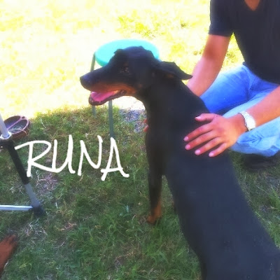 我家のドーベル達と一緒にトコトコと庭を歩くんです。